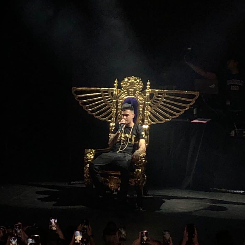 Sabiendo de antemano que 8belial es el componente del grupo que más pasiones levanta, en todos los sentidos, ver la sala llena hasta la bandera y un público sediento del sudor de Marcos Nicolás Arenas, no dejó de sorprenderme para un artista que no tiene más que una mixtape en el mercado. Ya sea por su siempre flamante estética que combina las réplicas de marcas caras con el estilo flashy y bling bling del swag dosmilero, por esa irresistible y deseable planta de cani de barrio con aspiraciones o por su versátil capacidad para combinar el trap, el reggaeton, el dancehall y el pop de manera personal e intransferible, su ascenso meteórico, en comparación con el resto del colectivo, ha venido dado por una canción en concreto y una colaboración de lo más fructífera, Orilla junto a Bad Gyal.