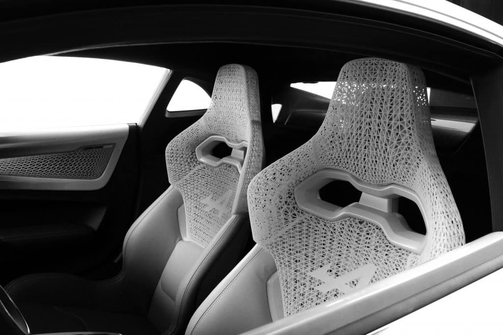 En el interior de A110 Monochromatic, la sección superior blanca contrasta con la inferior negra. Se ha optado por la impresión 3D para dar ligereza y transparencia a los respaldos y las puertas. La tapicería de blanco a negro se hace eco de la gradación del exterior. Por último, elementos interiores de aluminio como la decoración de la consola, una placa y umbrales de puerta específicos completan el diseño.