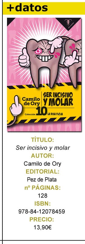 En Ser incisivo y molar Camilo de Ory nos recopila más de seiscientas afirmaciones, sentencias y reflexiones. Dividida en dos partes: una con el mismo título que el libro y otra con el nombre de “Recortes” en el que Camilo de Ory vuelve una vez más a las andadas y no defrauda ni en cuanto estilo ni en ser un defensor y paradigma del humor negro.