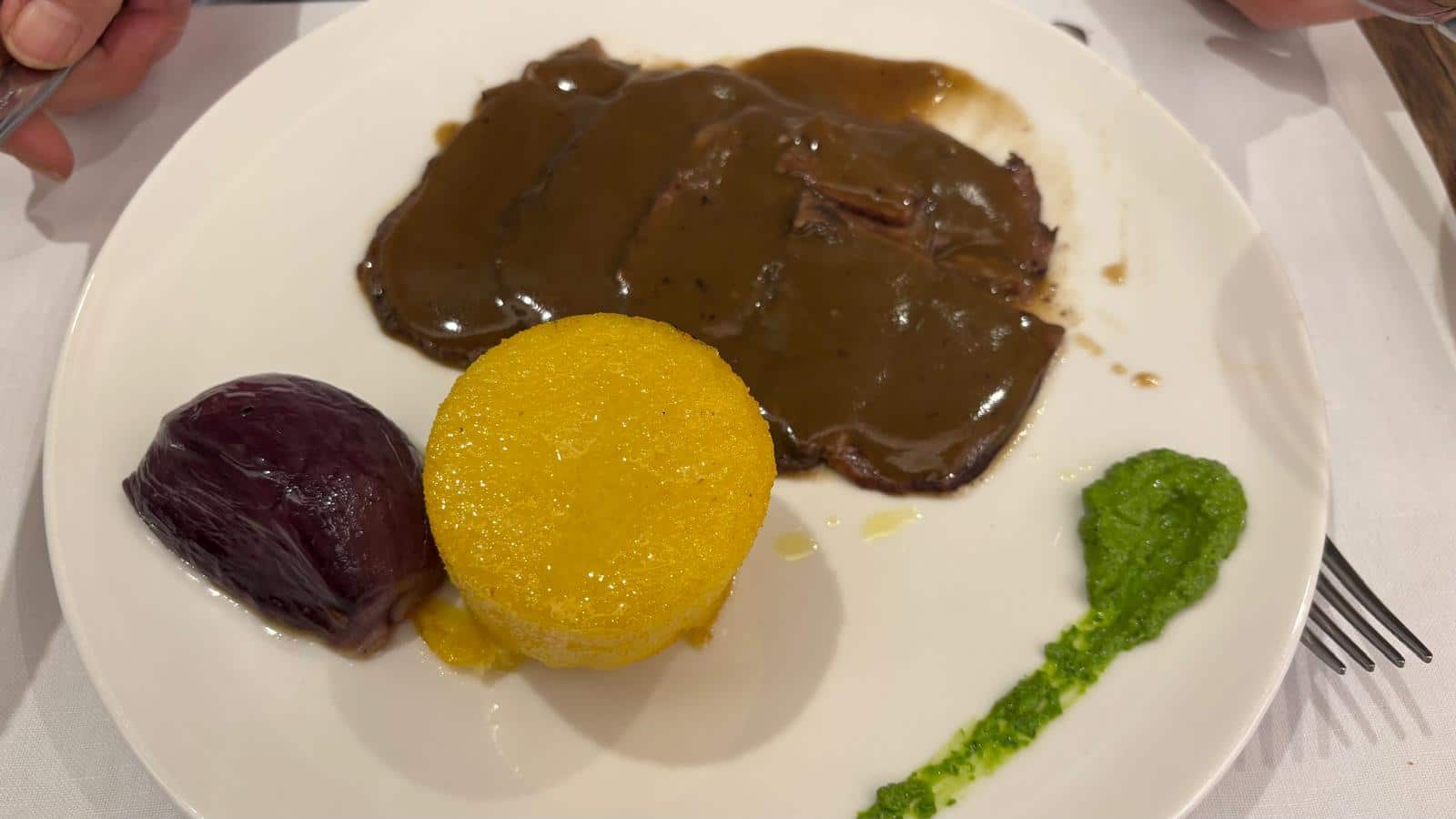 Entre los segundos platos, la recomendación es clara: el brasato, rico y envolvente, y el célebre Château de la Enoteca, recetas que combinan tradición y técnica. Acompañándolos, un surtido de setas del Altiplano de Asiago, aromáticas y sabrosas, que completan el plato con un guiño auténtico al territorio.