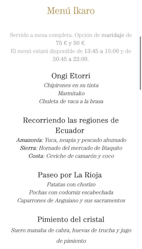 El menú “Ikaro”