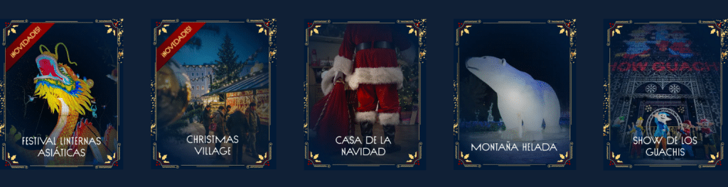 Los visitantes se sumergirán en la magia de la Navidad desde su entrada, gracias a la espectacular ambientación creada por la iluminación y decoración que adorna todo el parque, e irán descubriendo a su paso las diferentes experiencias que se encontrarán en Mágicas Navidades: la brillante exhibición de luz de la Puerta Mágica, un montaje único en Europa con un millón de bombillas led de bajo consumo en un impresionante espectáculo de luces y sonido; el Festival Linternas Asiáticas, un sorprendente paseo de más de 1 km de luces entre animales luminosos, desde elefantes y leones, a mariposas de colores que volarán por encima de sus cabezas; también se adentrarán en un fascinante mundo de seres mitológicos en la Montaña Helada; y en el Camino de Belén podrán recorrer el pueblo de Belén, entre figuras a escala natural, hasta llegar al Nacimiento.
