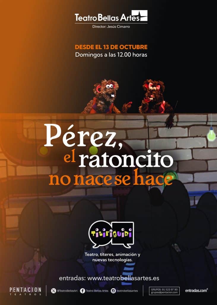 Uno de los personajes más queridos por los niños de todo el mundo, el Ratoncito Pérez, tiene su propia historia de origen, y muy pocos la conocen. A partir del 13 de octubre, el Teatro Bellas Artes de Madrid ofrecerá la oportunidad de descubrirla con la obra «Pérez, el ratoncito no nace, se hace», un espectáculo que combina teatro, dibujos, títeres y nuevas tecnologías para contar cómo este ratoncito se convirtió en el encargado de llevar pequeños regalos a cambio de dientes caídos.