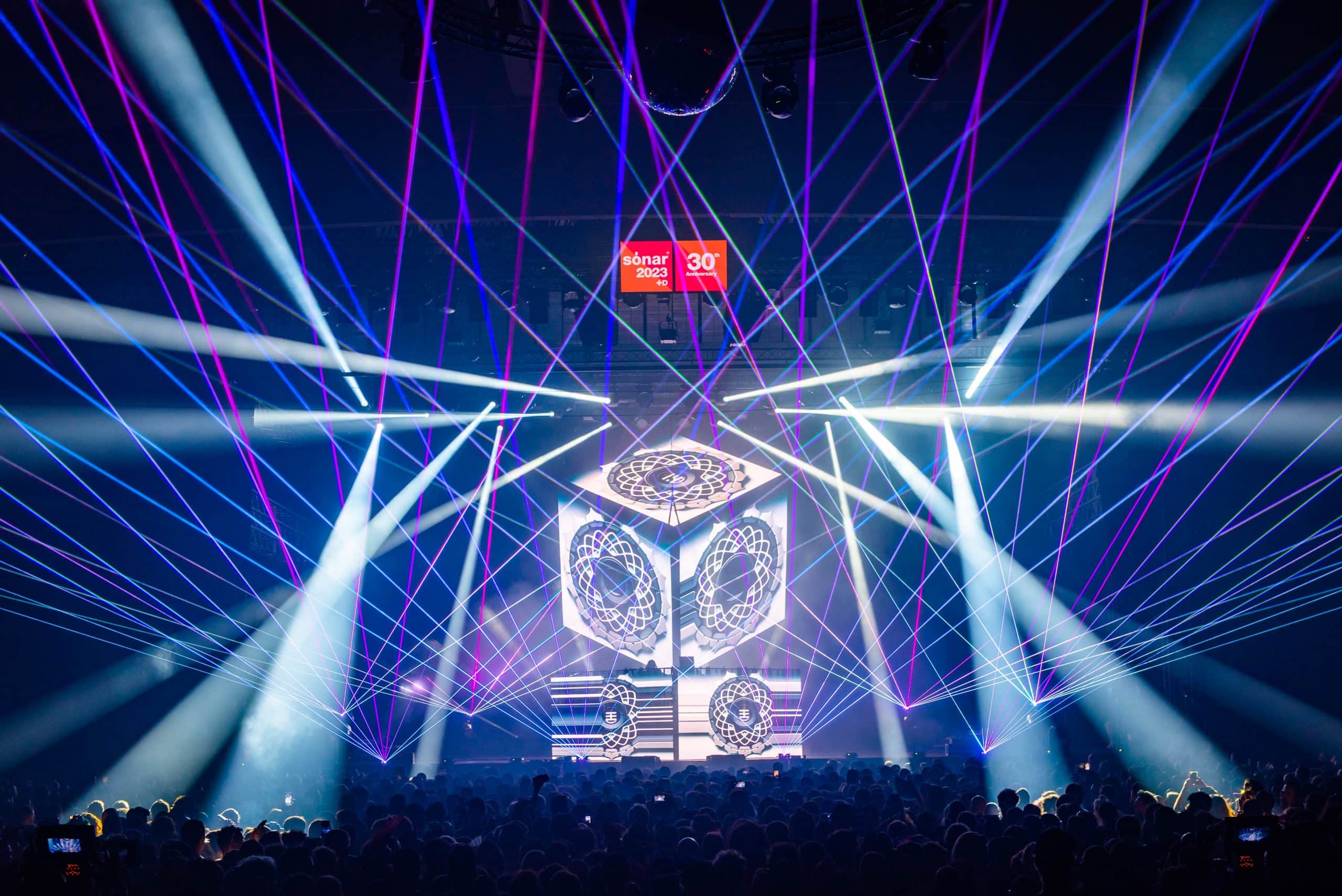 Llegar al Sónar de noche y penetrar en sus enormes naves industriales es siempre una sensación única e incomparable. Si no fuera por lo problemático de sus accesos, esas justas puertas laterales siempre se agolpan excesivamente de gente, la grandiosidad de sus espacios es uno de sus fuertes. Llegando justo para ver terminar el ataque hardcore de Cardopusher, a las 22.00 salía a escena en el Sónar Club el maestro Richard D. James bajo su mítico alter-ego Aphex Twin, sin duda alguna, uno de los precursores de la electrónica moderna y uno de los maestros indiscutibles del género. Encapsulado en una cabina metálica en la que se proyectaba el logo clásico de Aphex Twin y algunas de las visuales que también salían por las pantallas instaladas en el recinto, además del cubo central que presidia las alturas del escenario.